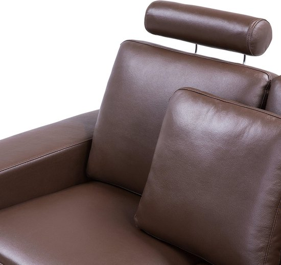 Het bruine leer geeft de bank een tijdloze look die makkelijk te integreren is in diverse interieurstijlen. Verder is het leer gemakkelijk te onderhouden, wat een lange levensduur van het mooie oppervlak belooft. Het gebruiken van een onderhoudsmiddel voor het leer, vooral voordat het kouder wordt, is echter wel aan te bevelen.